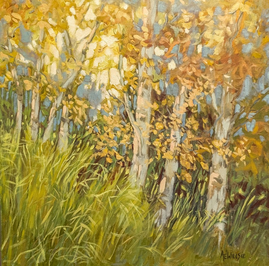 Bruce Bay Birches – 12x 12 on cradled wood panel – SOLD