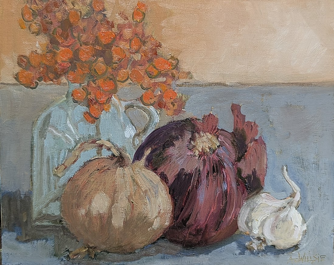 Onions, Garlic and berries – 8 x 10 oil on panel